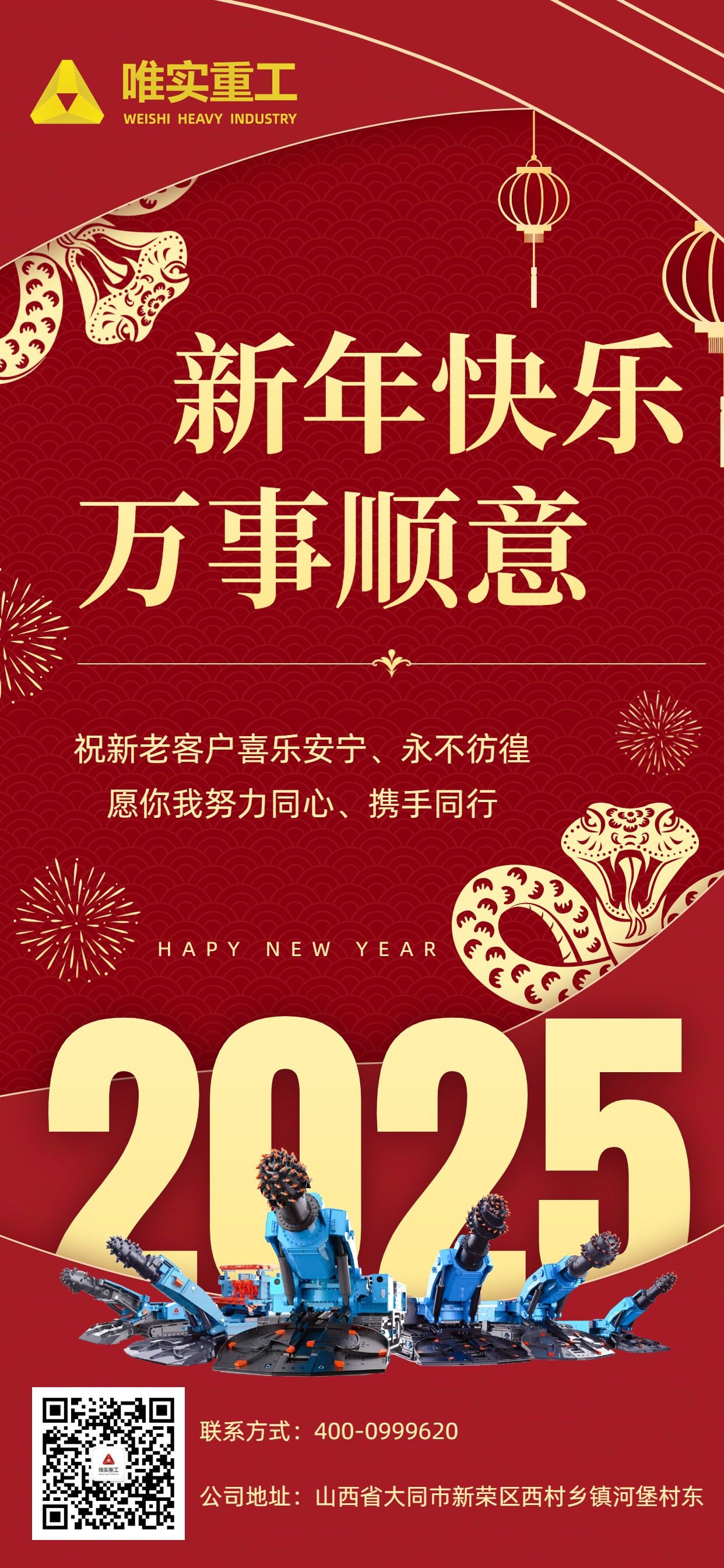 2025新春快乐 | 唯实重工恭祝新老客户蛇年大吉